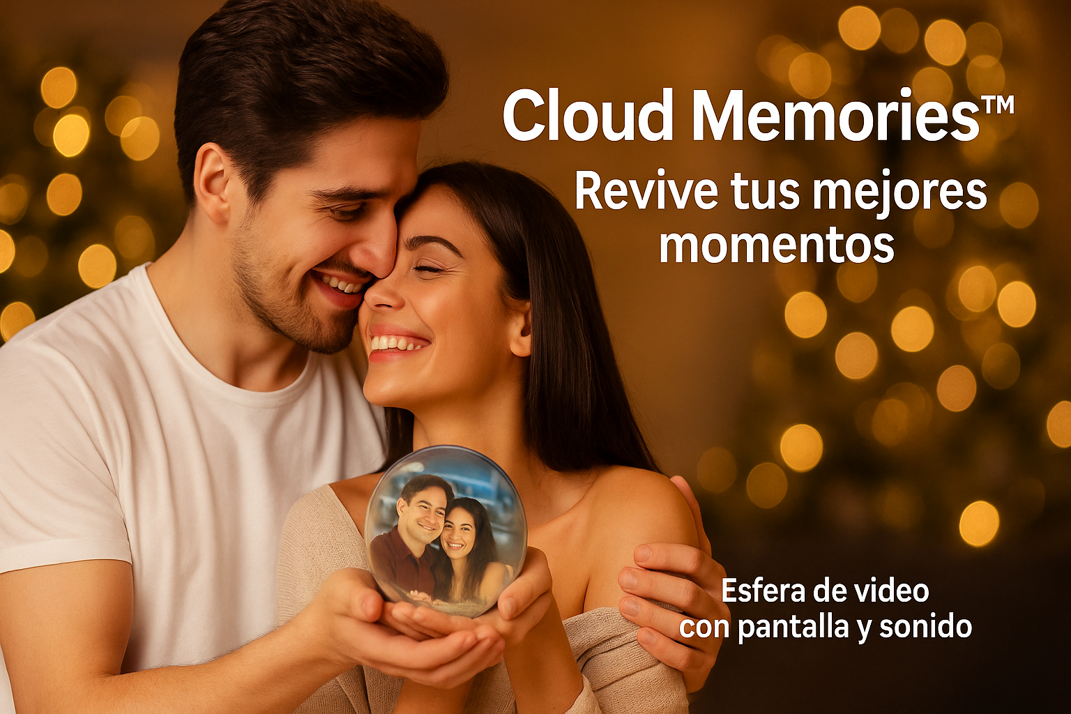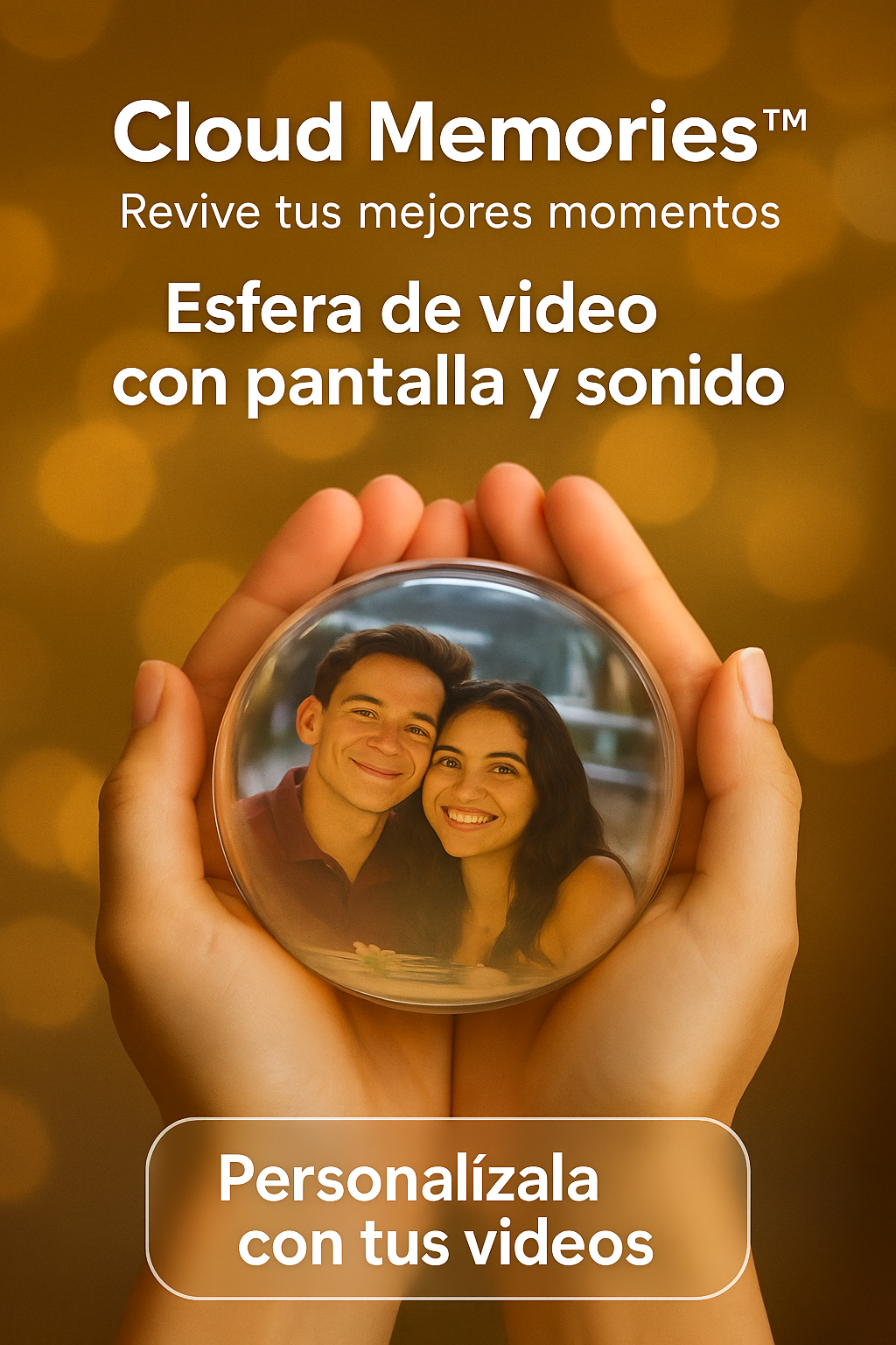 Convierte tus fotos y videos en una esfera luminosa con pantalla y sonido. Cárgala por USB y sorprende a quien más quieres.